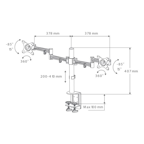 Подходяща за монтаж на 2 монитора TFT/LCD/LED с размер на дисплея до 30" (76.2 cm)!